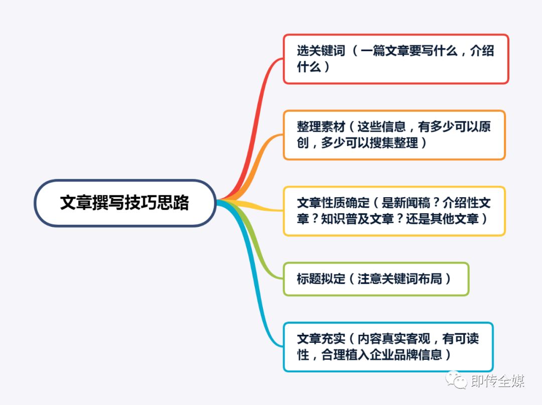 这个就牵涉到文章的撰写技巧,通常来说,针对于企业线上推广所用的文章有以下分类网站SEO文章,信息硬推引流文章,品牌软文曝光+引流文章,新闻增信文章,故事性的文章等。撰写文章的技巧,这里不做展开,其大概的思路如下: